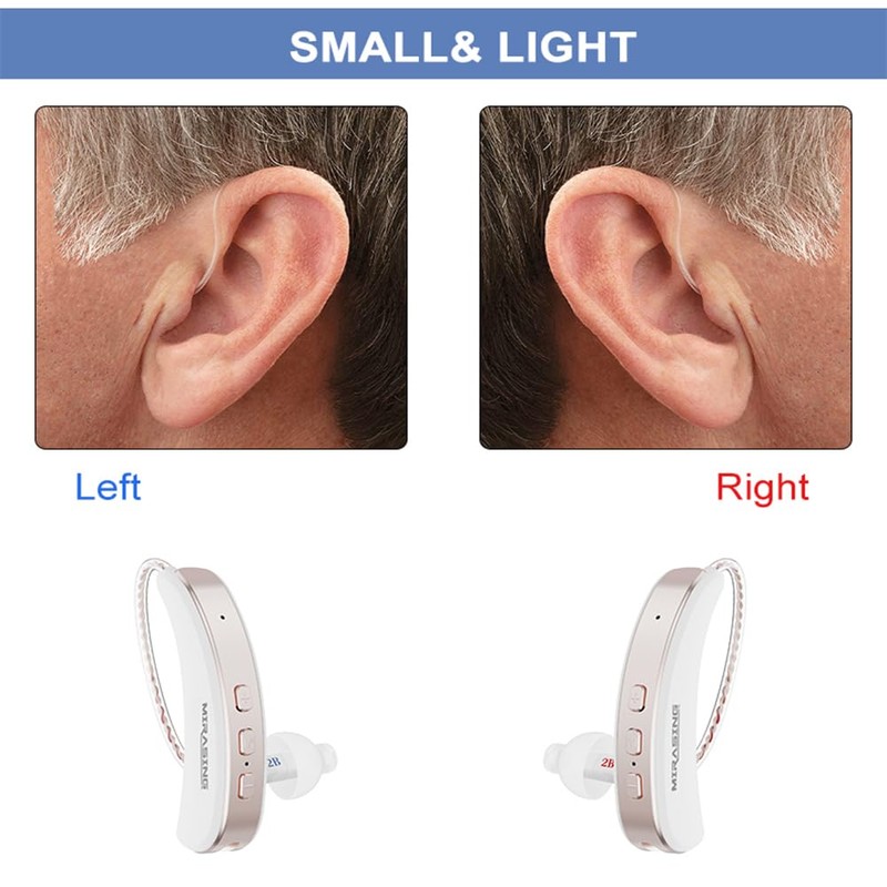 - Compact and Nearly Invisible : The shape of the hearing aid is designed to be small and delicate, can be well hidden behind the ear, with silicone earplugs, soft and comfortable; and the volume is light and small, so that wearing it for a long period of time will not cause any pressure on the ear, which is both good-looking and easy to use, so who wouldn't love it
