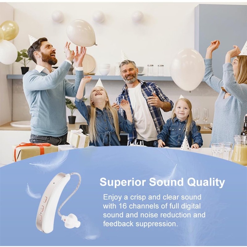 - Upgraded Noise Reduction : Hearing aids for seniors upgraded RIC pipeline, effectively avoiding sound quality damage; equipped with 16-channel ultra-low-power digital chip, fine adjustment, adaptive full-frequency noise reduction. It provides a superior auditory experience in various environments
