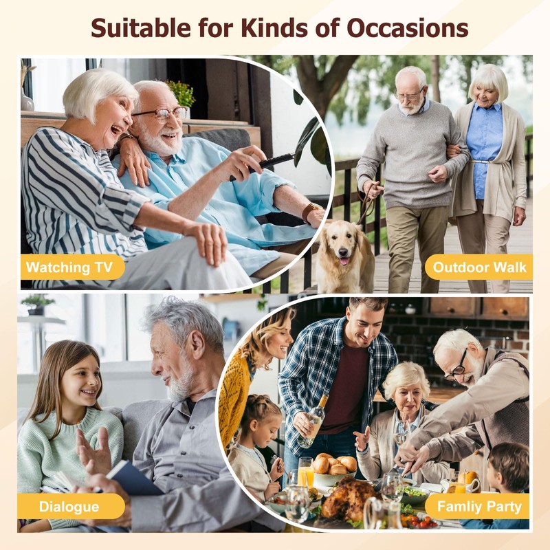 Earrck Ear Amplifier Hearing aids provide you with an affordable high-quality personal sound amplification solution. You can finally hear the sound of the TV, conversation, and outdoor activities while on the phone, instead of spending thousands of dollars on the prescribed hearing aids.Digital Hearing amplifiers are the best gifts for the seniors to bring them back to the clear world. So they never miss conversations with friends and family. Let them hear the colorful sounds again and fill the family with love and laughter!
