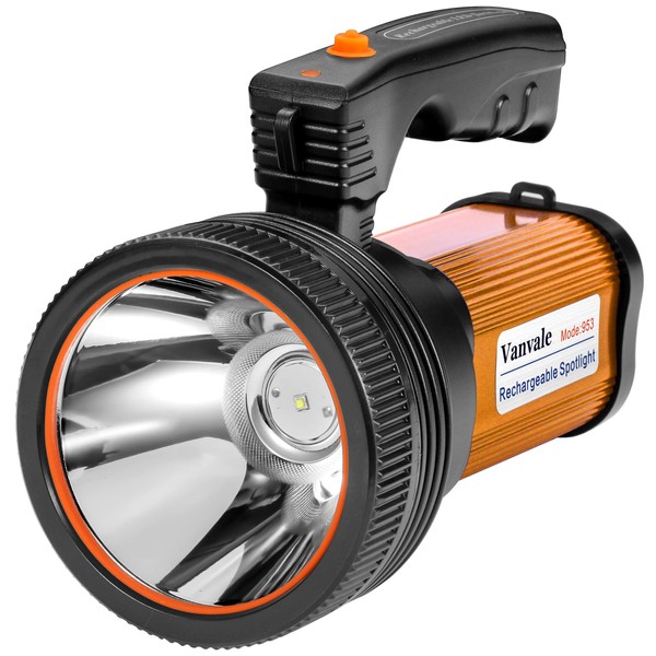 Rechargeable Searchlight Handheld LED Tactical Flashlight with Handle Spotlight 6000 Lumens High-Power Super Bright Torch with USB Output Torch (Gold)