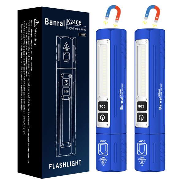 Rechargeable Tactical Flashlights High Lumens - Super Bright Small Powerful LED Magnetic USB C Flashlight, 8 Modes, Dual Button Waterproof Pocket Flash Light for Emergency, Car (2, Blue)