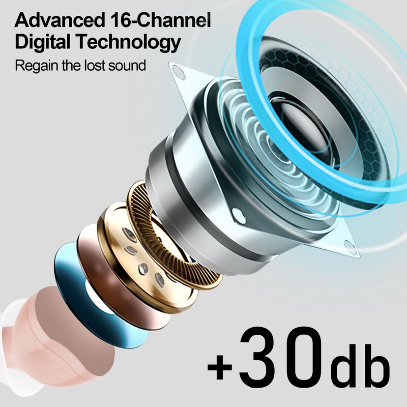 - ✅ Professional Noise Cancellation:Our 16-channel digital hearing aids for seniors actively filter background noise, ensuring crystal-clear conversations even in crowded spaces.