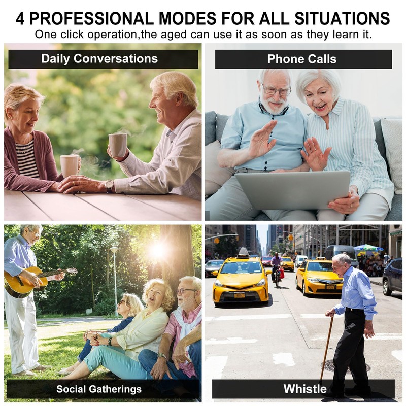 - ✅ Senior-Friendly Operation:Simple one-button control with volume adjustment and preset modes. Ready to use straight from the charging box!