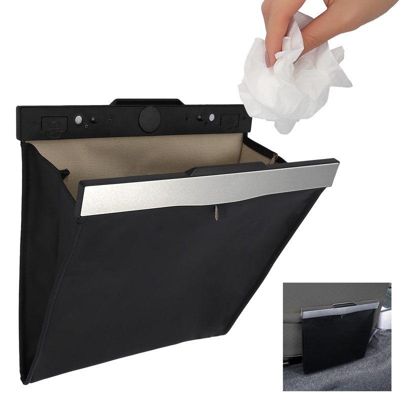 RechargePlus Car Trash Can Car Trash Can Slim Large Hook Trinket Organizer
