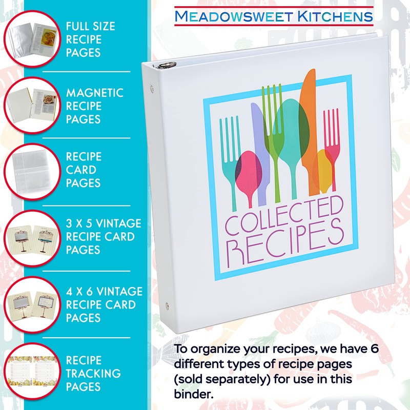 - COOKBOOK BINDER: Create your own family cookbook or recipe card binder easily with this product and our recipe pages (RECIPE PAGES SOLD SEPARATELY - please scroll down to the product grid for compatible items and choose which ones work for you!) You won't have to sort through a box of crinkled, stained recipe cards in a box, just flip through the book to find your recipe!
