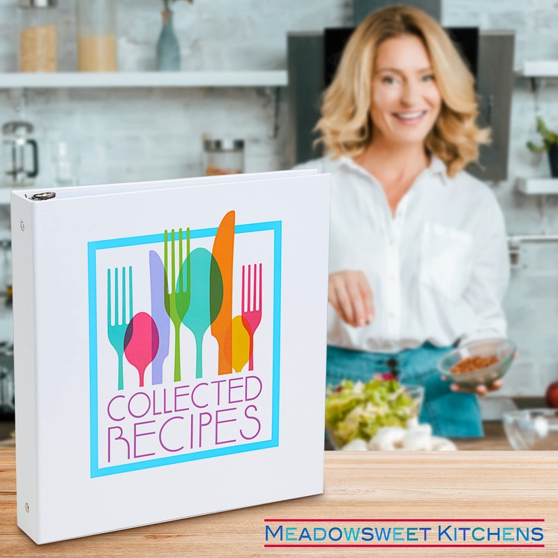 Recipe Binder with Dividers and Labels - Recipe Cookbook Binder for Full Size Recipes, Recipe Cards, Recipe Clippings - 3-Ring Full Size Modern Cuisine Recipe Organizer Book from Meadowsweet Kitchens