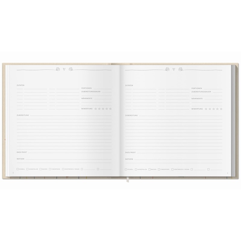 - The good thing about it: Record your best cooking and baking ideas in your personal cookbook so you don't forget them and cook them again and again. Divide your ideas into categories such as "fast", "fancy", "baking", "finger food" or "vegetarian/vegan".