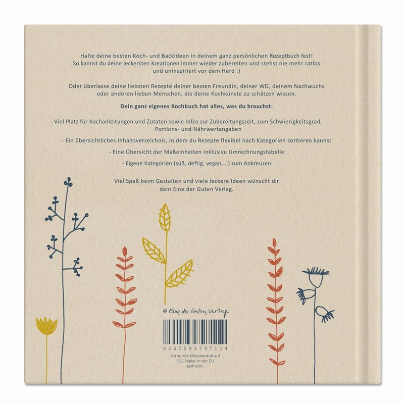 92 pages, 21 x 21 cm (format between A5 and A4), 120 g FSC paper, sustainably produced, printed on both sides, high-quality premium hard cover. The sturdy thread binding is very robust and can withstand the hectic everyday kitchen between soup and potatoes for a long time