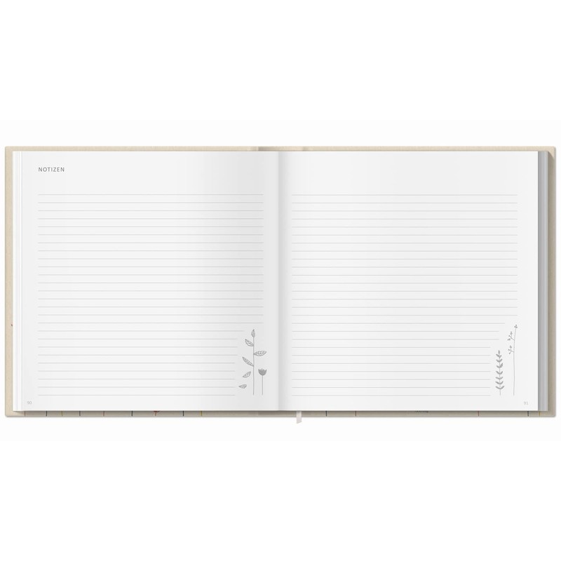 Recipe Book for Writing Yourself, Cookbook for 80 Favourite Recipes, Flower Design in Cream Beige, Premium Hard Cover, Robust Thread Binding, 21 x 21 cm