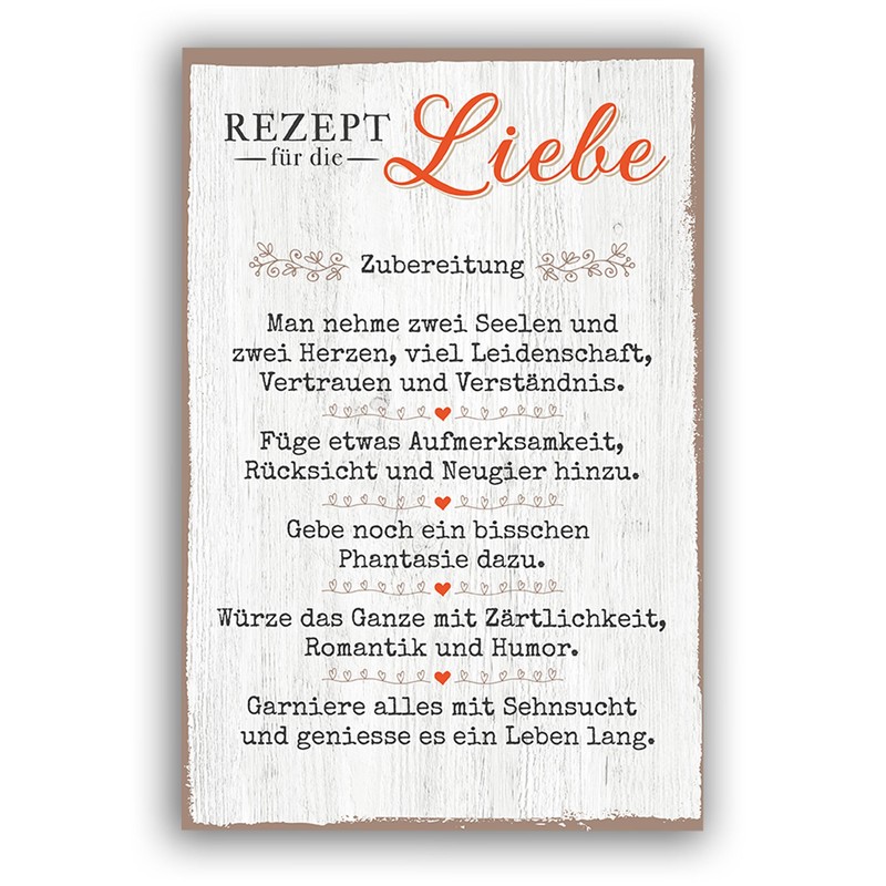 Recipe for Love - Home Sign with Quote as Gift and Decoration