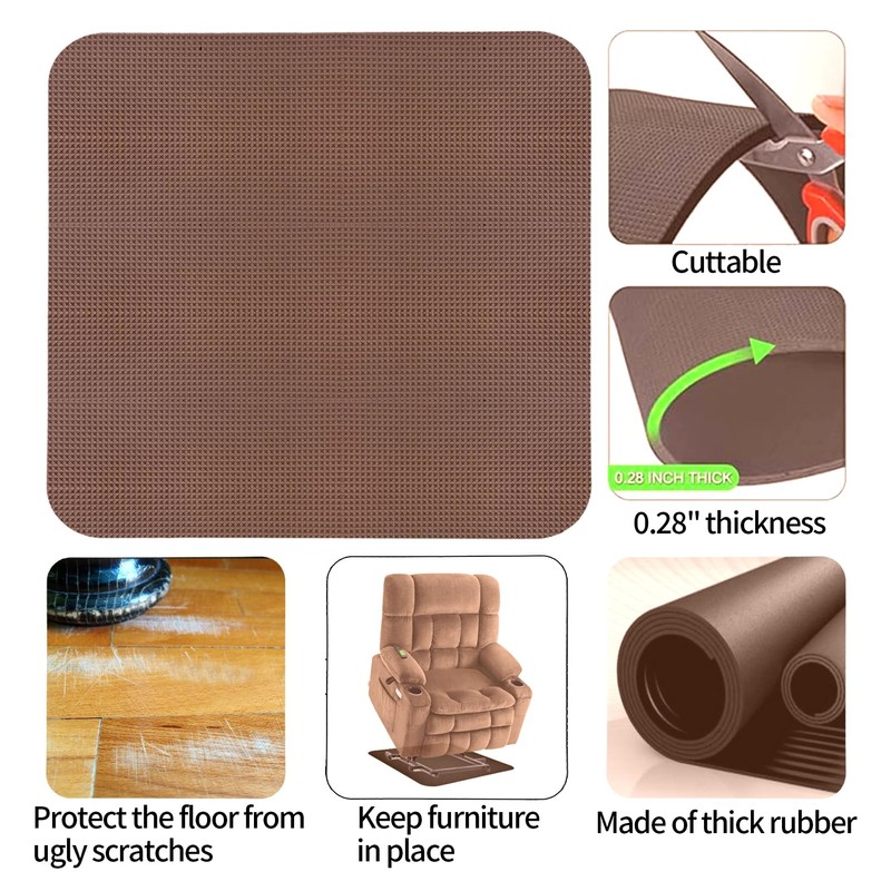 - 【Premium Environmentally Friendly Materials】The recliner square non-slip furniture pad is made of high-quality EVA rubber, 30''x30"0.28'' in size, no odor, safe, wear-resistant, non-slip, can be cut into any shape as needed, flexibly used in all aspects of life.