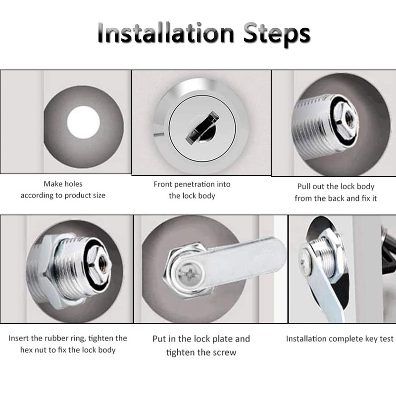 - 【Easy to Install】 Drill a hole at the suitable place, insert the lock head, fix the cam with fastening screw.