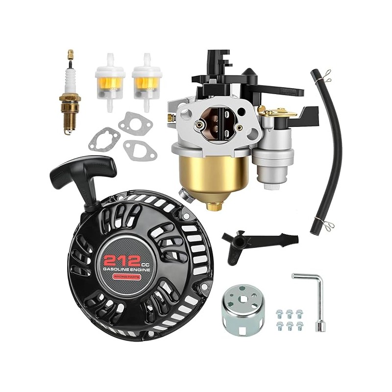 - Package Includes: 1 x Predator 212 Pull Start, 1 x Starter Cup, 1 x Spark Plug, 1 x Wrench, 6 x Bolts, 1 x GX160 Carburetor, 3 x Gaskets, 2 x Fuel Filte*s, 1 x Fuel Line