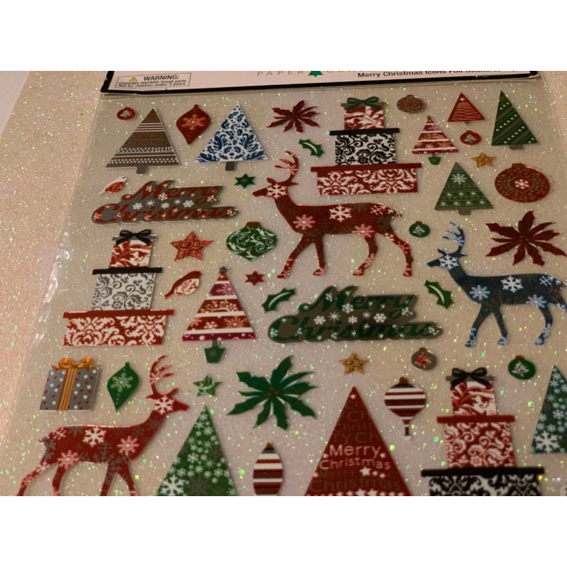 RECOLLECTIONS CHRISTMAS PAPER CRAFT MERRY CHRISTMAS ICONS FOIL STICKERS 46PCS TREES DEER GIFTS