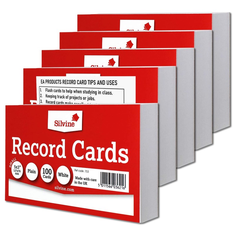 A great value bulk pack of 500 5x3 inch Silvine Record Cards with EAP usage hints and ideas. You will receive 5 x packs of 100 cards.