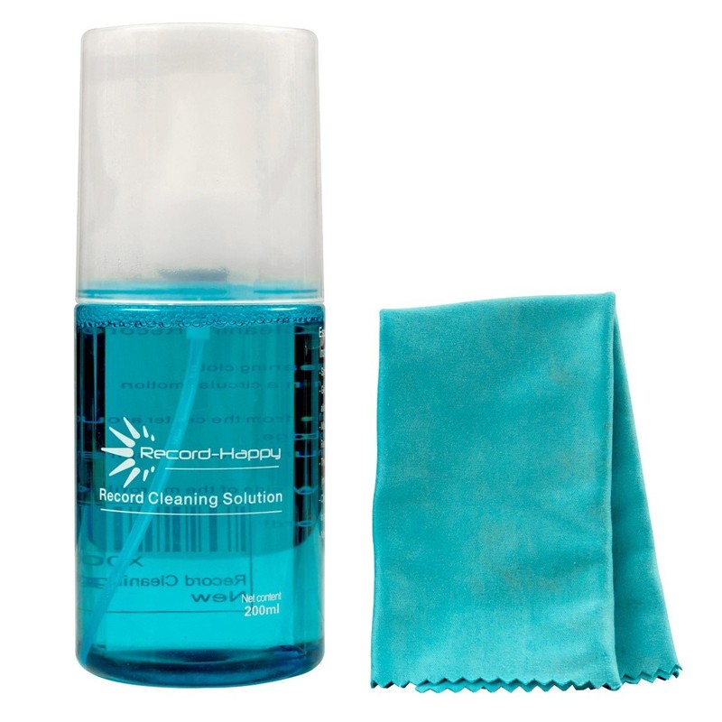 - ENJOY YOUR MUSIC AT ITS BEST; gentle and effective Record Cleaning Solution and microfiber cloth from Record-Happy, essential for an effective Record maintenance routine. 6.7 oz (200ml) and 7” x 7” cloth