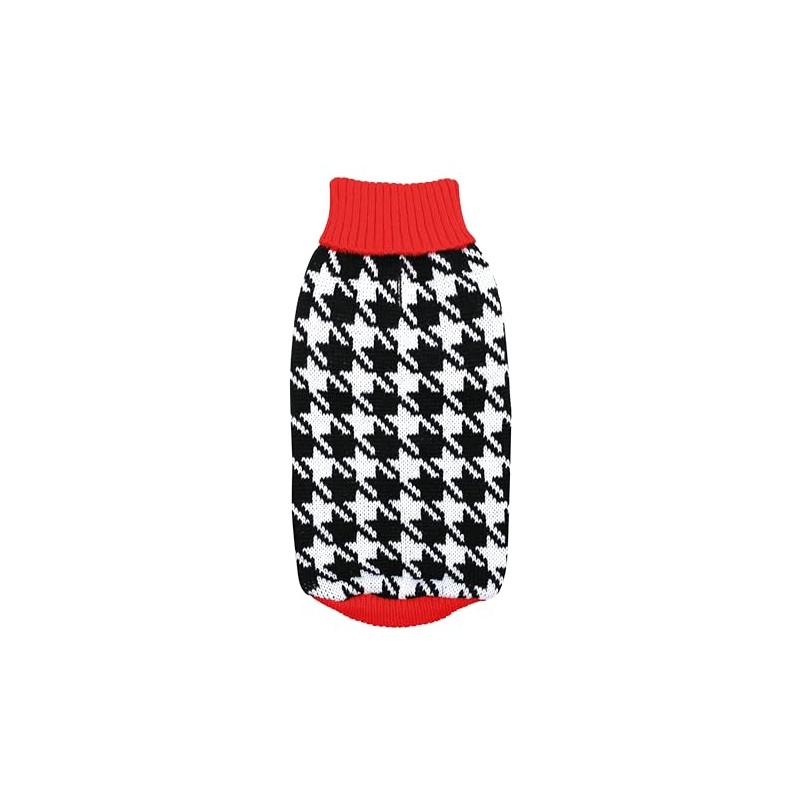 - Chic and modern style: The Shopping sweater features an elegant white-black pattern with red details, perfect for adding a touch of urban style to your four-legged friend. Turtleneck turtleneck adds an extra element of class.