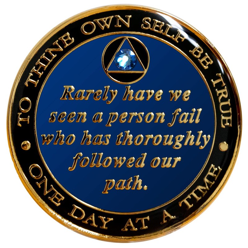 Recovery Mint Sobriety Chip AA Bill & Bob Blue Triplate Crystallized Blue Sapphire Bling (22 Year)