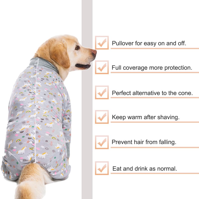 - 【MULTI-PURPOSE】 Soft and Breathable dog recovery full body suit, can be used as a Pajamas, friendly to skin, Machine washable. The Full cover bodysuits with legs can contain shedding of dog. Keep your room clean, whether in outdoors, indoors sofa or cars.