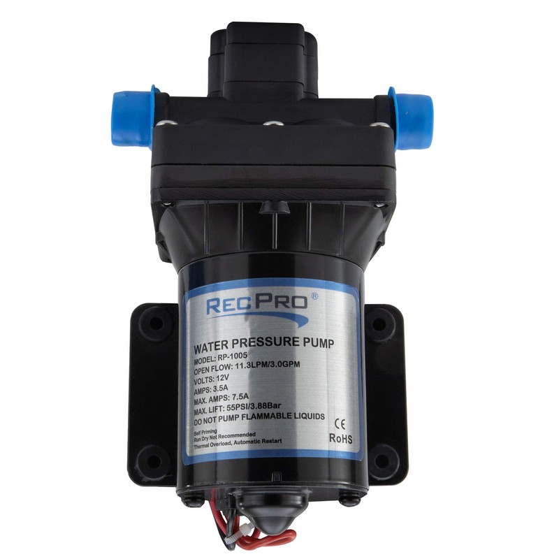 - With the low power draw, you can save more power for your other appliances or an air conditioning unit. Easily connecting to your water system and an equivalent of Flomax, this water pump is perfect for RV intermittent use.