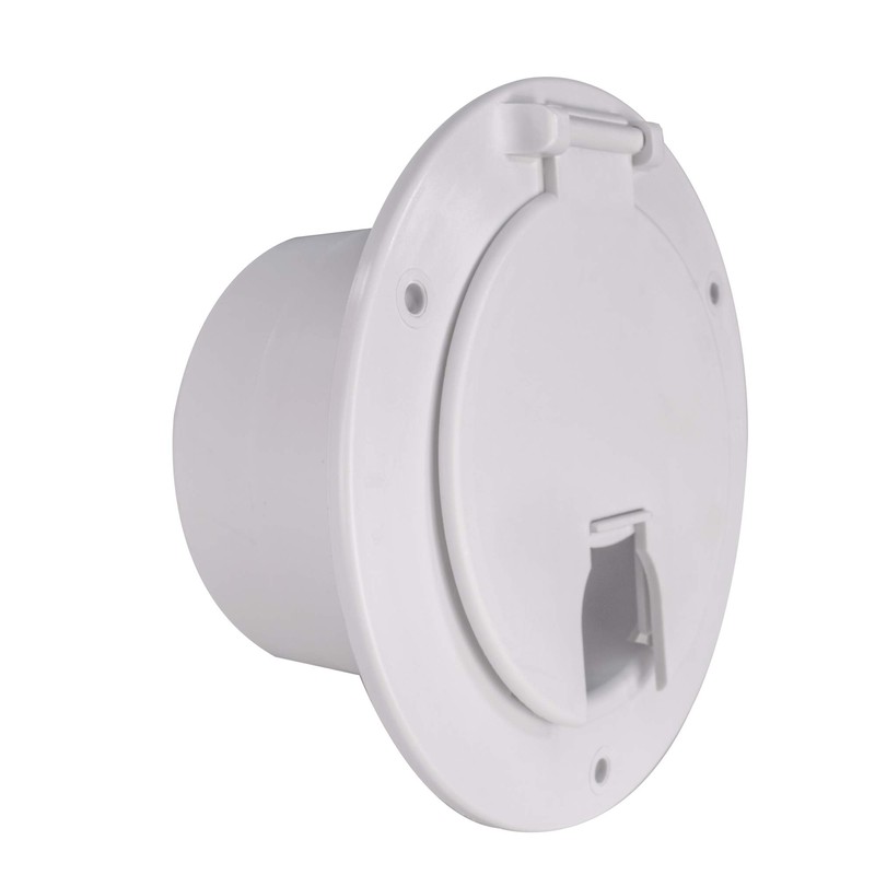 RecPro RV White Power Cord Hatch Cover | UV-Stabilized Plastic | Snap Lock Door | Accepts up to 50 Amp Cord | Made in America