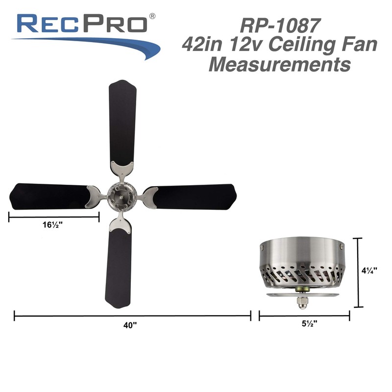 - This ceiling fan is also built with RVs in mind. The lower profile of the fan (the mount sits right up against the ceiling rather than hang down) takes up less space than a more typical fan design and the fan is controlled through an included wall switch.