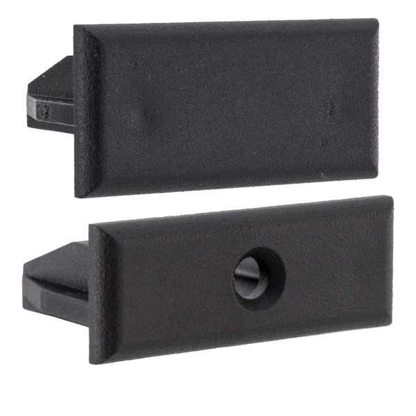 This pleated shade end cap replacement kit includes 4 end caps total; 2 bottom end caps and 2 top end caps. The bottom end caps have a hole for the pull cord assembly, while the top end caps are flat. These end caps are exact replacement pieces for Rec Pro RV Pleated Shades and are not guaranteed to be compatible with other models of shades.