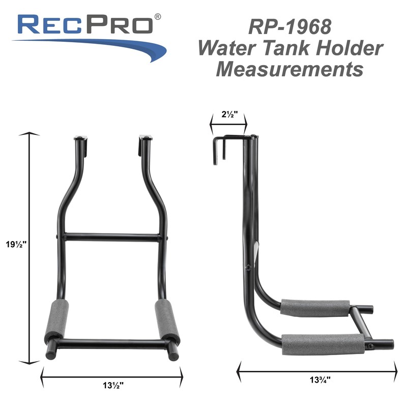 Introducing the RecPro Gray Water Tank Holder, the perfect solution for all your portable water tank needs! Designed to conveniently hook onto your ladder, this holder securely holds your tank in place, freeing up valuable space in your RV or camping setup. Made with lightweight aluminum construction, it is easy to install and won't weigh you down on your travels. Plus, with built-in sturdy steel brackets and soft foam padding, your tank will stay secure and protected while you're on the move. But that's not all - this tank holder also comes with a black powder coating for added durability and a sleek look. Say goodbye to flimsy and unreliable tank holders, and hello to the sturdy and reliable RecPro Gray Water Tank Holder. And to make things even more convenient, we've included a 6.5 foot tie-down strap with a carabiner, so you can easily secure your tank in place without any hassle. No more worrying about your tank sliding around or taking up precious space in your RV. The RecPro Gray Water Tank Holder is here to make your camping and RVing experience even more enjoyable. So why wait? Get your hands on one today and see the difference it makes in your travels. Order now and experience the convenience and reliability of the RecPro Gray Water Tank Holder.