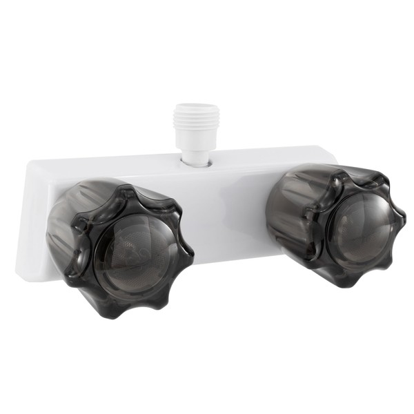 RecPro RV Shower Valve | 4 Inch Shower Diverter | White with Smoke Crystal Knobs