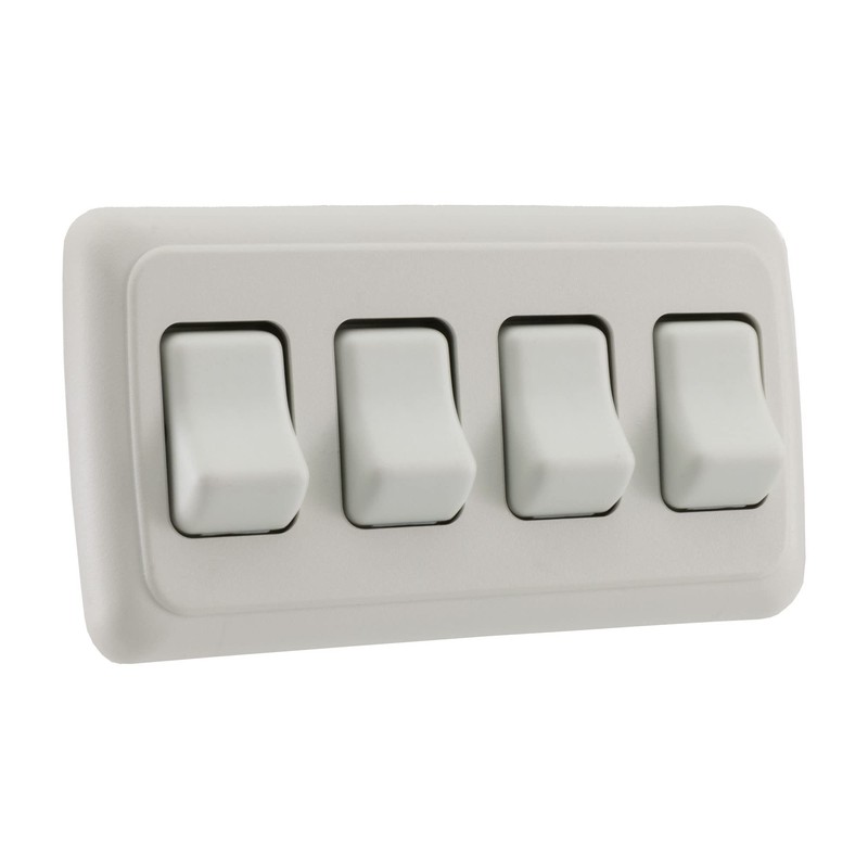 RecPro RV Switch SPST On/Off 4 Gang Bezel | 12V (White)