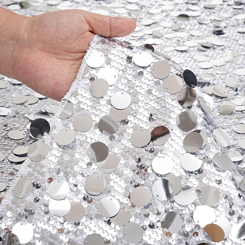 - Exquisite Workmanship: The silver sequin tablecloth is made of 5mm high quality round sequins and 18mm large shiny round sequins high density material. The backing is mesh fabric, the sequins are not easy to fall off, the edge of the tablecloth is beautifully designed and can be reused many times.