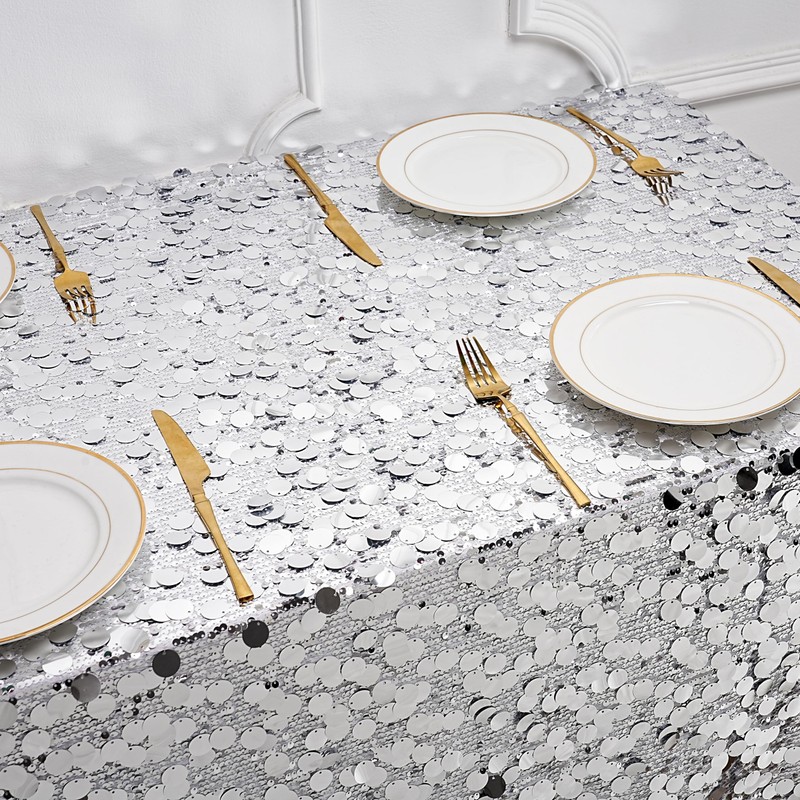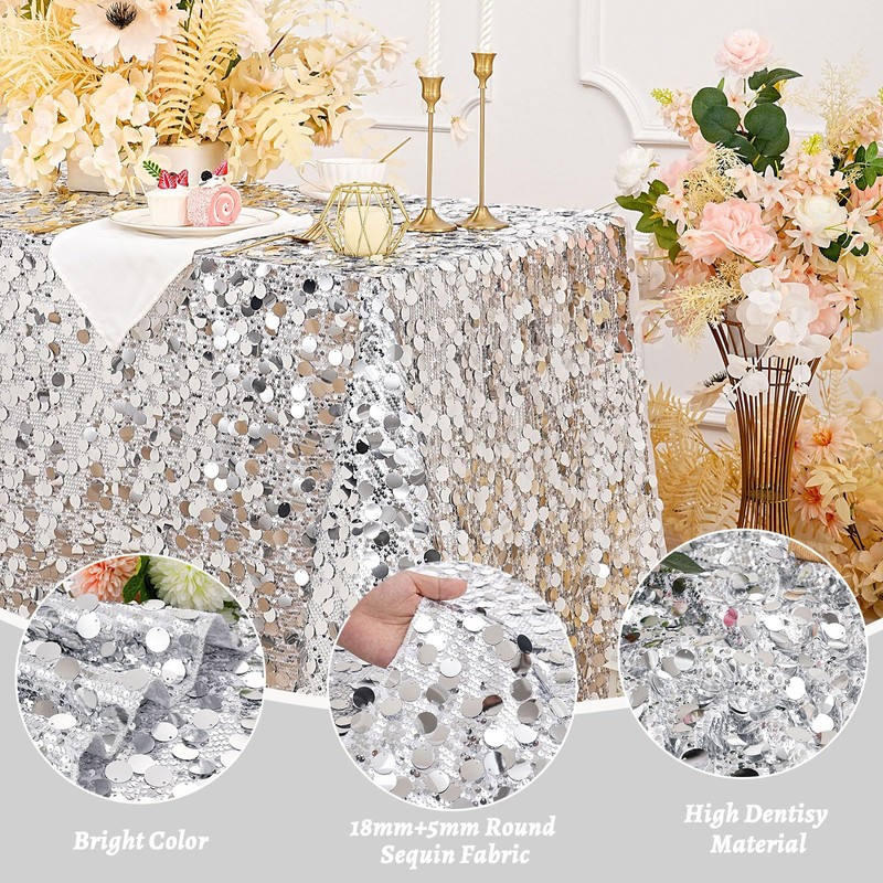 - Widely Used: Silver rectangle sequin tablecloths are perfect for birthday parties, cake tables, wedding ceremonies, baby shower, graduations, Christmas decorations, Thanksgiving, Halloween decorations and any theme parties. You can also use two or more glitter tablecloths overlapped for an unexpected effect!