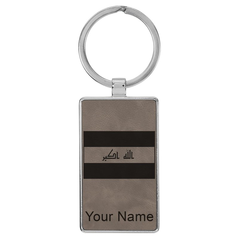 Rectangle Keychain, Flag of Iraq, Personalized Engraving Included (Metal Frame, Gray)