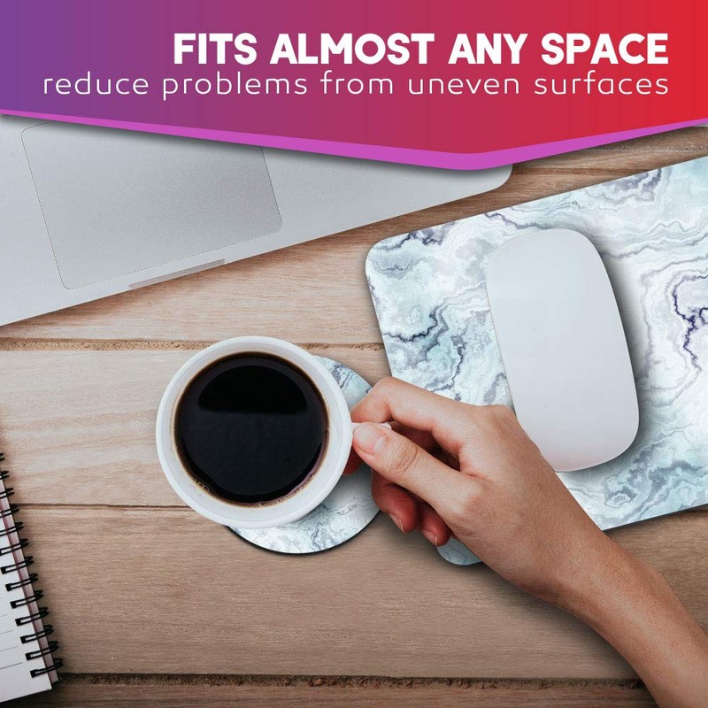 Rectangle Mouse Mat & Round Coaster Set - Blue Marble Crystal Effect Rock 20 cm & 9 cm for Computer & Laptop, Office, Gift, Non-slip Base #13222
