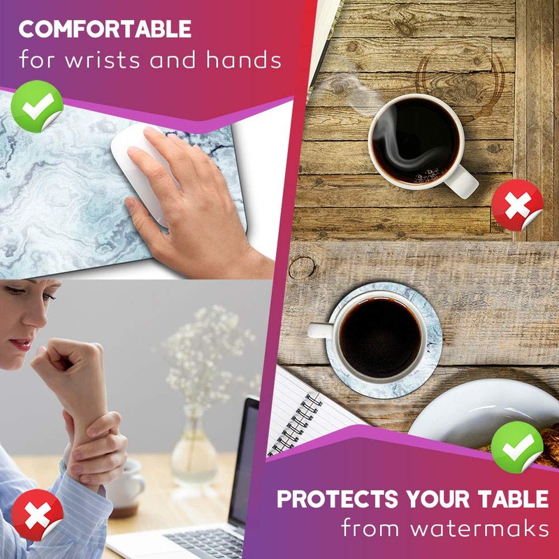 - A SOFT AND FLEXIBLE 5MM THICK MOUSE MAT - soft materials convenient for wrists and hands, Non-Slip base. It is very portable and comfortable to use