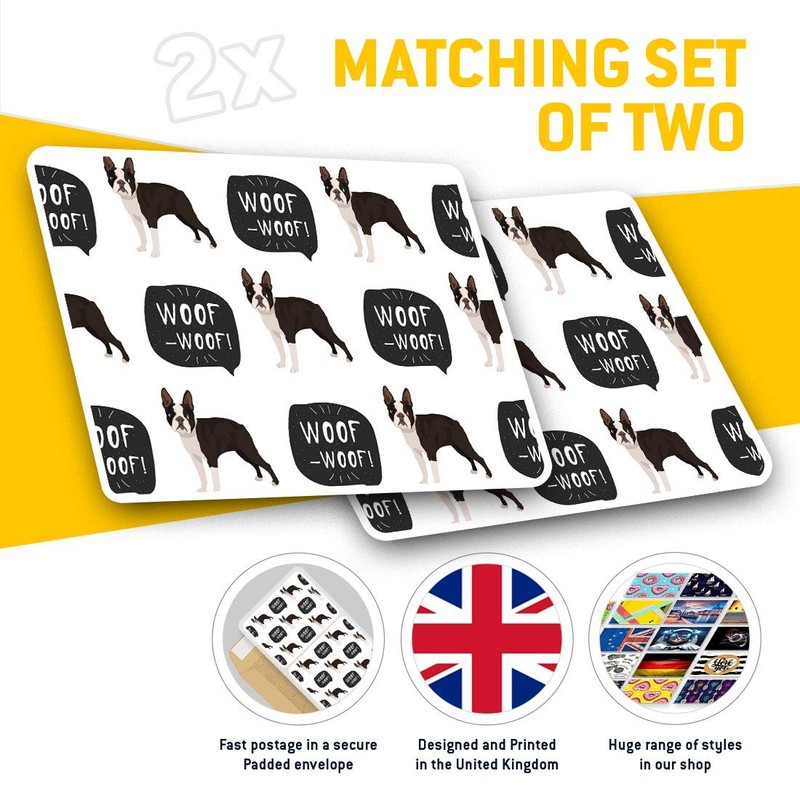 Rectangle Stickers (Set of 2) 10cm - Boston Terrier Dog Pattern Woof Woof Fun Decals for Laptops,Tablets,Luggage,Scrap Booking,Fridges, #16618