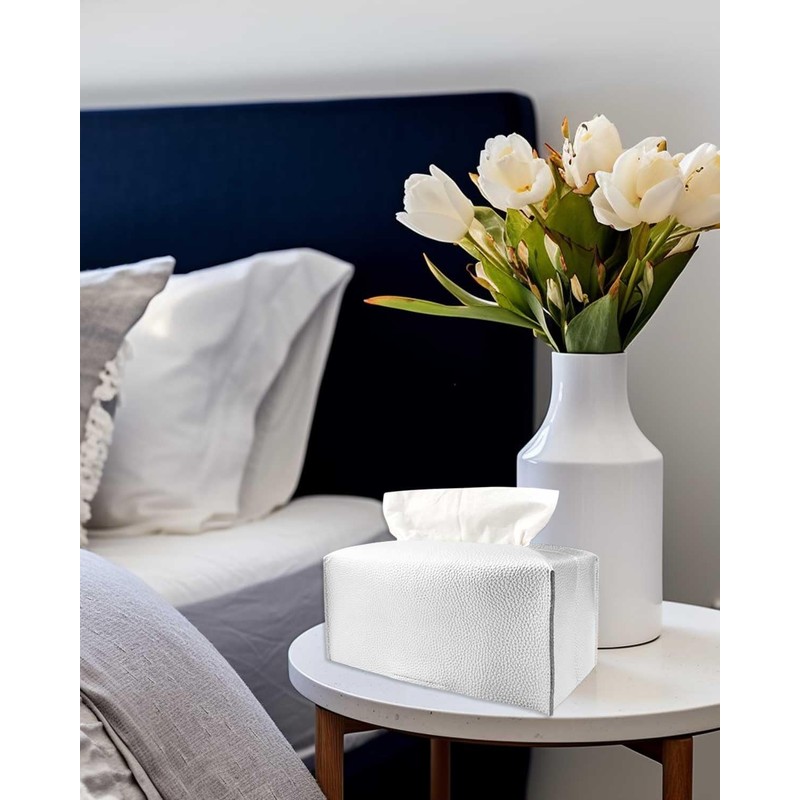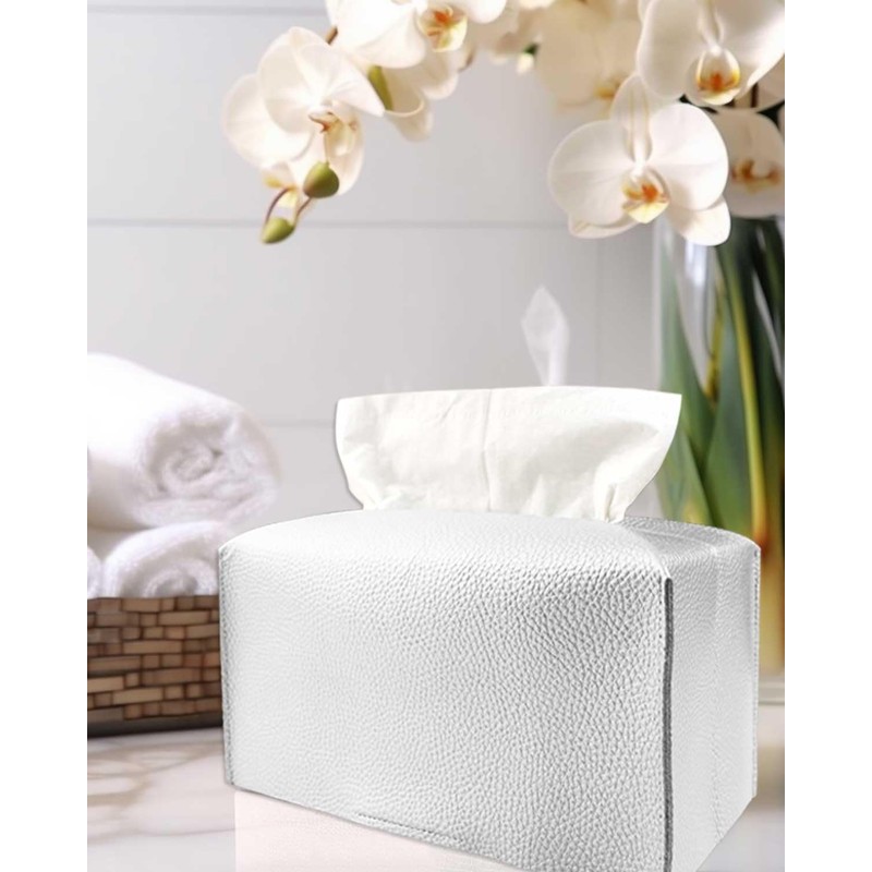 Rectangle Tissue Box Cover Silver - Normal Size Leather Rectangular Tissue Bo...