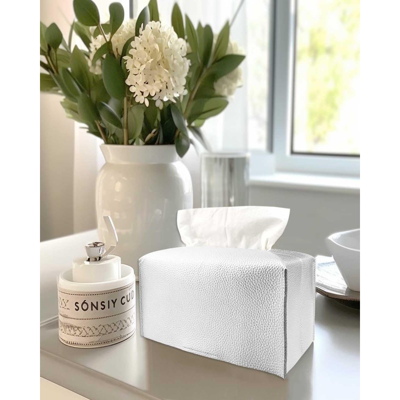 • SIMPLE BUT COOL LOOKING: the silver tissue box cover rectangular is designed in minimalist style, and made of leather-liked premium PU leather, which makes this faux leather tissue box cover rectangle stylish and rich feeling. And it’s super easy to wipe off with a wet towel when get dirty.