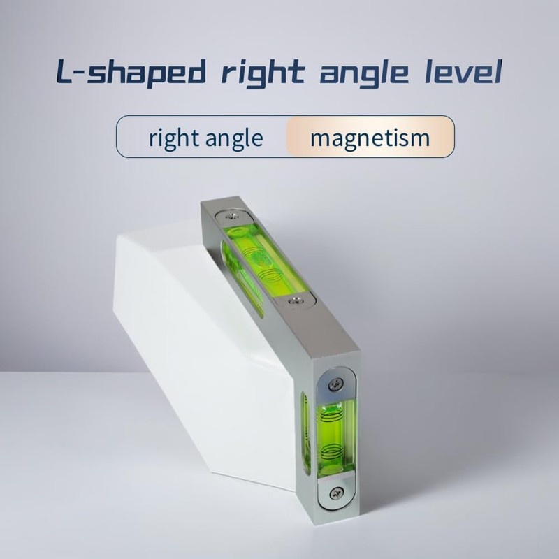 Rectangular high-Precision L-Shaped Level, 7-Character Household Strong Magnetic Level, Double Bubble Water Level, Three Window Visible (Upgraded Version)