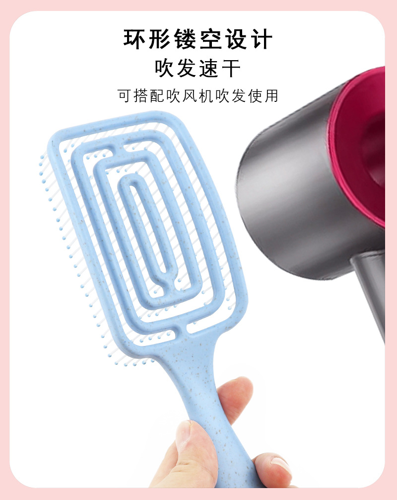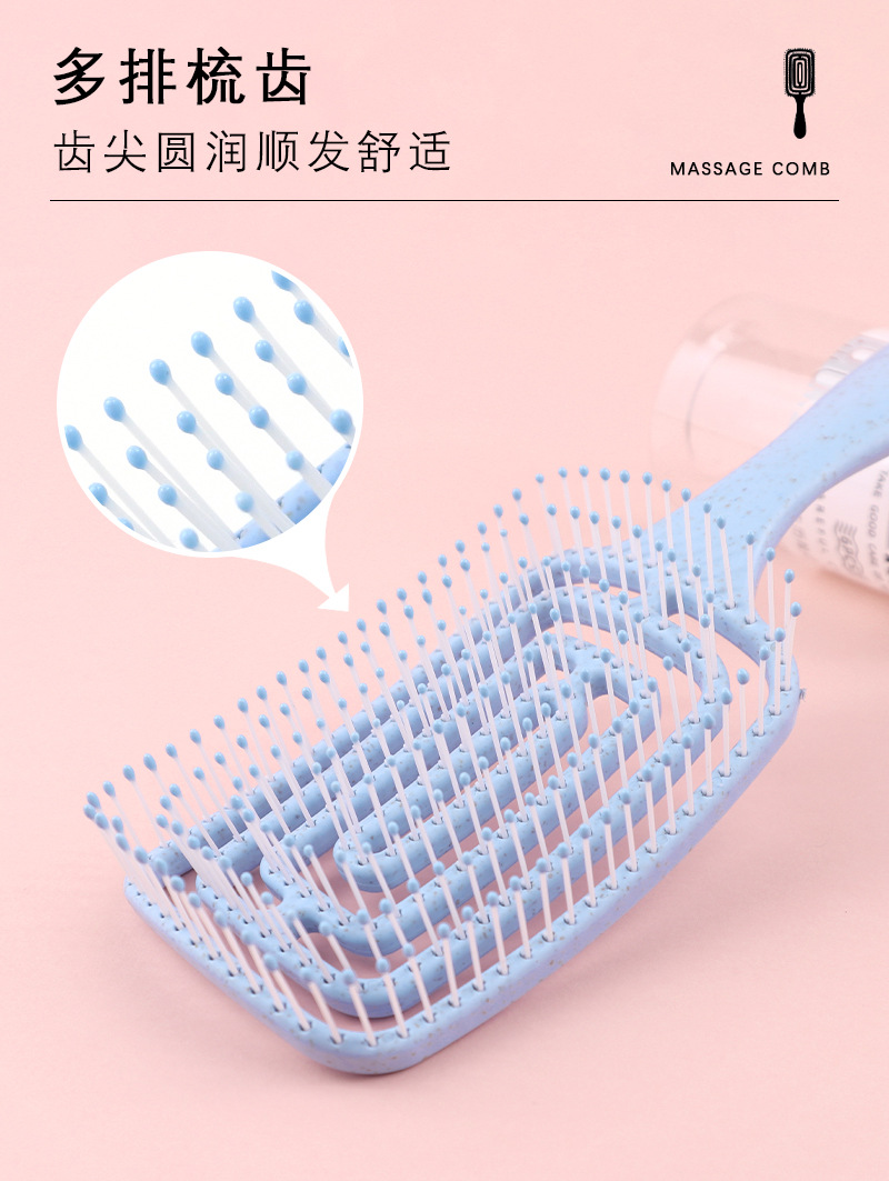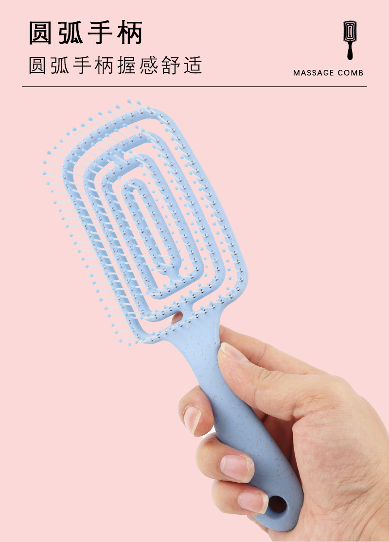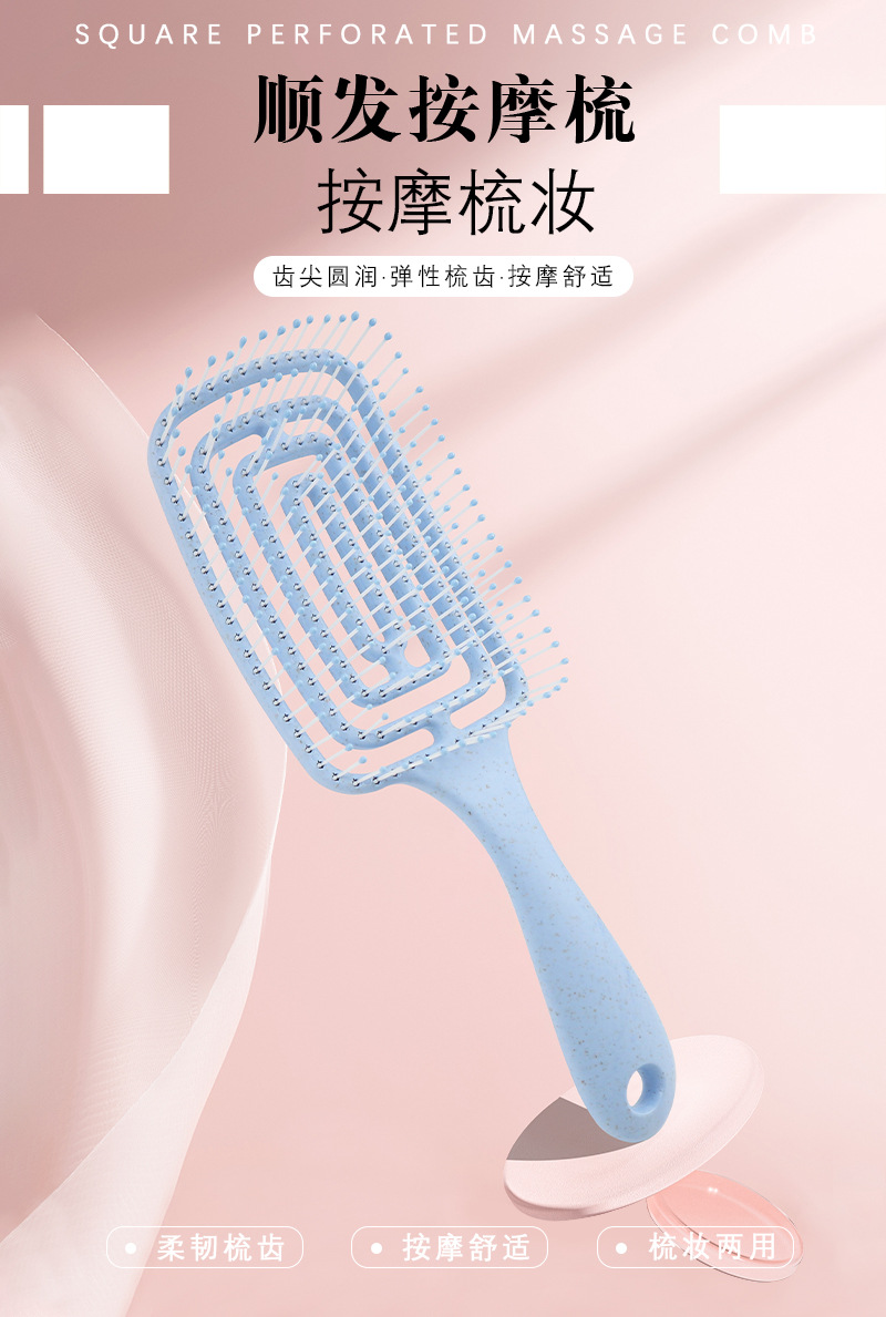 Rectangular Punching Massage Hairbrush for Long Curly Hair Free Size/Blue 4ea
