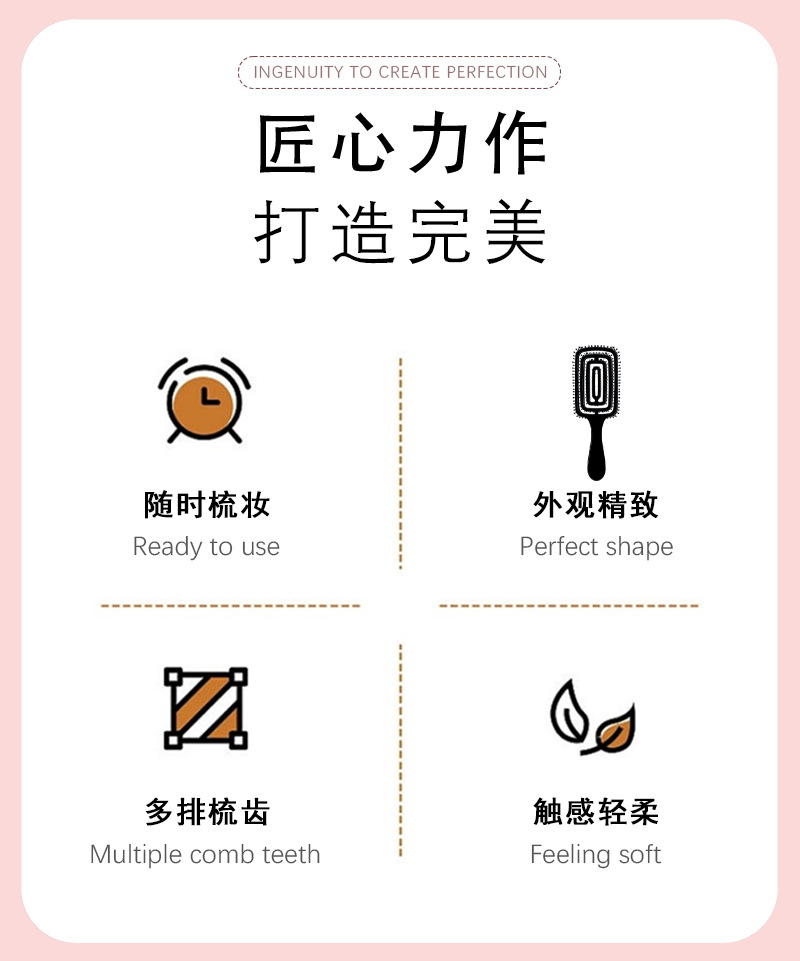 💆♀️ Indulge in a soothing scalp massage with every stroke. The special punching design stimulates your scalp, promoting a refreshed and revitalized feeling.