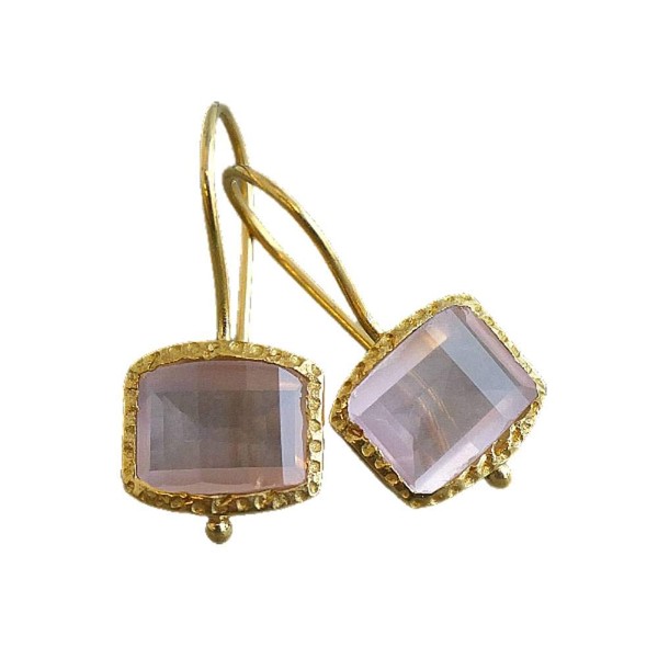 Rectangular Step Cut Rose Quartz Gold Plated 925 Sterling Silver Earrings