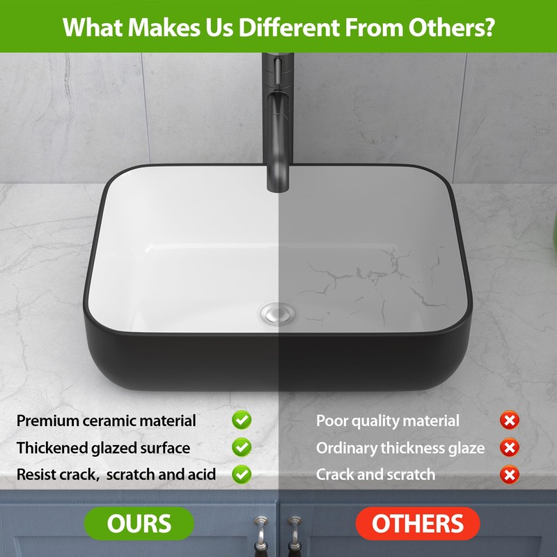 • 【Easy Cleaning】The black and white bathroom sink made of high quality glaze.Multi-glazing provides shinny and smooth surface. Curved corners look elegant and easy to clean with a damp soft cloth