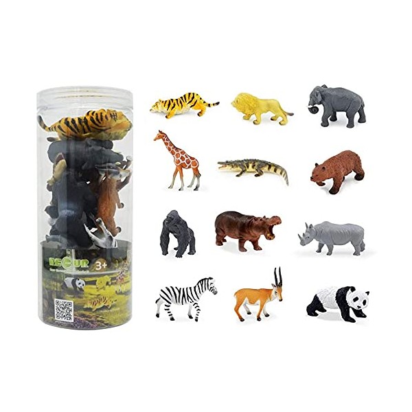 RECUR 12PCS Assorted Wild Animals PLAYSET, Ages 3+