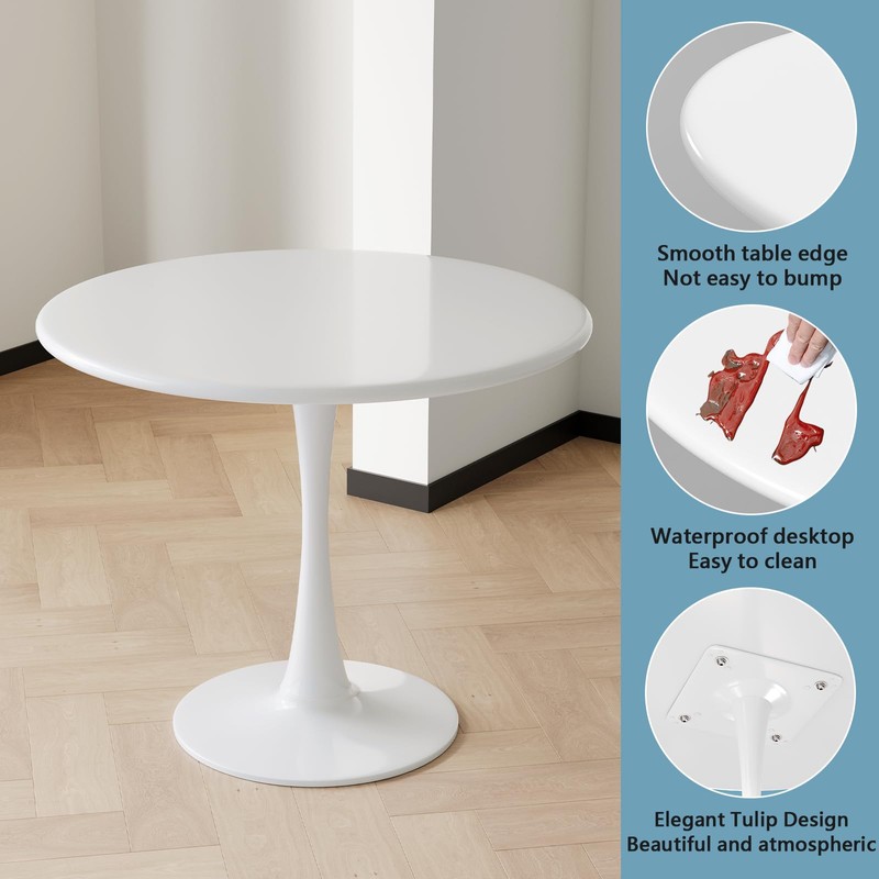 - 【WHITE PEDESTAL TABLE】 The round white dining table is designed in a modernist mid-centry style, showcasing its rugged durability and enhanced aesthetic appeal with the tulip design.