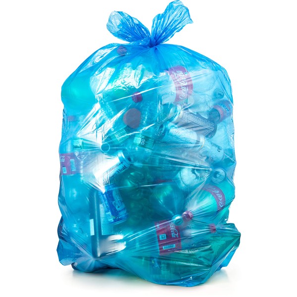 - Each box includes a total of 50 Blue Recycling trash bags that are individually folded