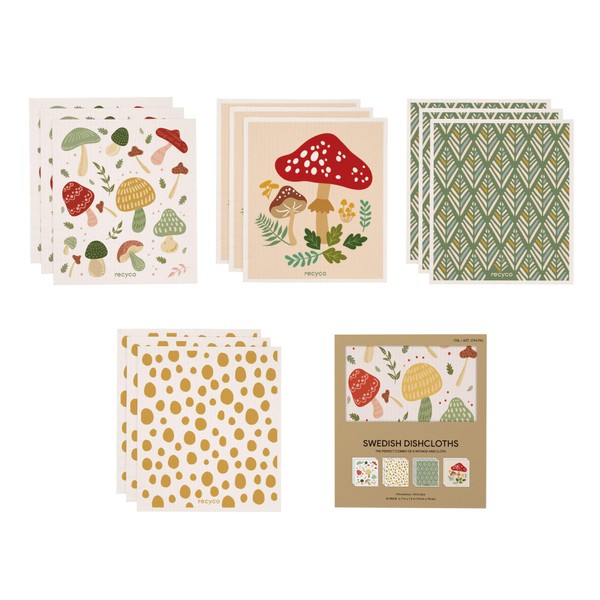 RECYCO Reusable Dish Cloth 12 Pack Swedish Dish Clothes for Kitchen Counter Cotton Cellulose Absorbent Machine Washable Plant Based Okeo Tex Standard 100 Sponge Wipes Women Owned (Mushroom)