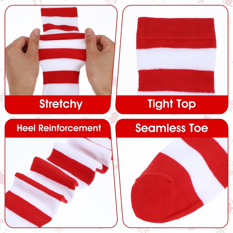 - Stylish & Versatile: The red and white knee high striped socks and striped arm warmers are ideal for festive occasions. Pair the striped knee high socks with skirts or shorts, and the striped fingerless gloves with casual or party outfits for a chic look