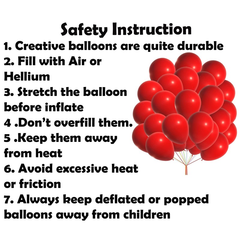 - Attention: Certain Colour difference occurs after inflation, but the Colour effect will be better. Please don't overfill the balloons, and also avoid sunburn, overheat, pointed object and excessive friction. We always send few extra balloons if the other balloons have hole or damage. For any queries, do not hesitate to contact us