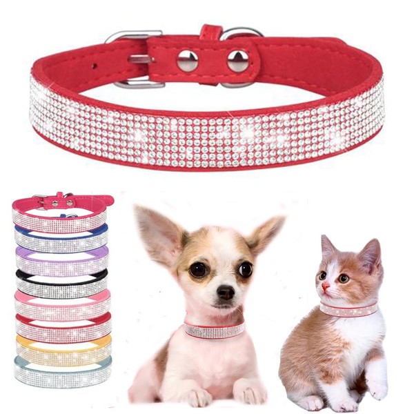 Red Bling Cat Collar, Rhinestone Dog Collars Girl Diamond Puppy Collar Female Sparkly Sparkle Jewelry Cute Adjustable for XXS XS Small Medium Boy Pet Kitten Princess, XX-Small